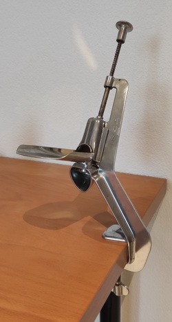 - Design: Geschwungene, sichelförmige Form mit einer Spirale an einem