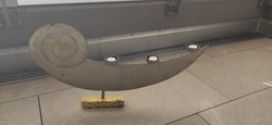 optisch an eine geschwungene Schiffssichel oder eine nautilusartige