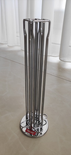 - Es handelt sich um einen dekorativen Kerzenständer aus Metall, der