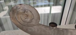 optisch an eine geschwungene Schiffssichel oder eine nautilusartige